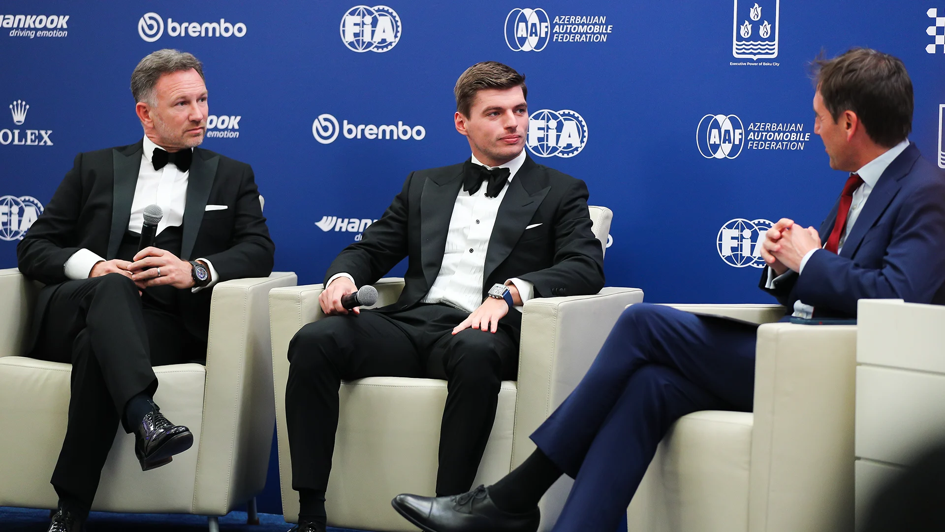 Verstappen and Perez were both on hand at Friday evening’s ceremony in Baku, Azerbaijan to collect their winner and runner-up trophies, with Red Bull team boss Christian Horner also in attendance on behalf of the Milton Keynes operation.